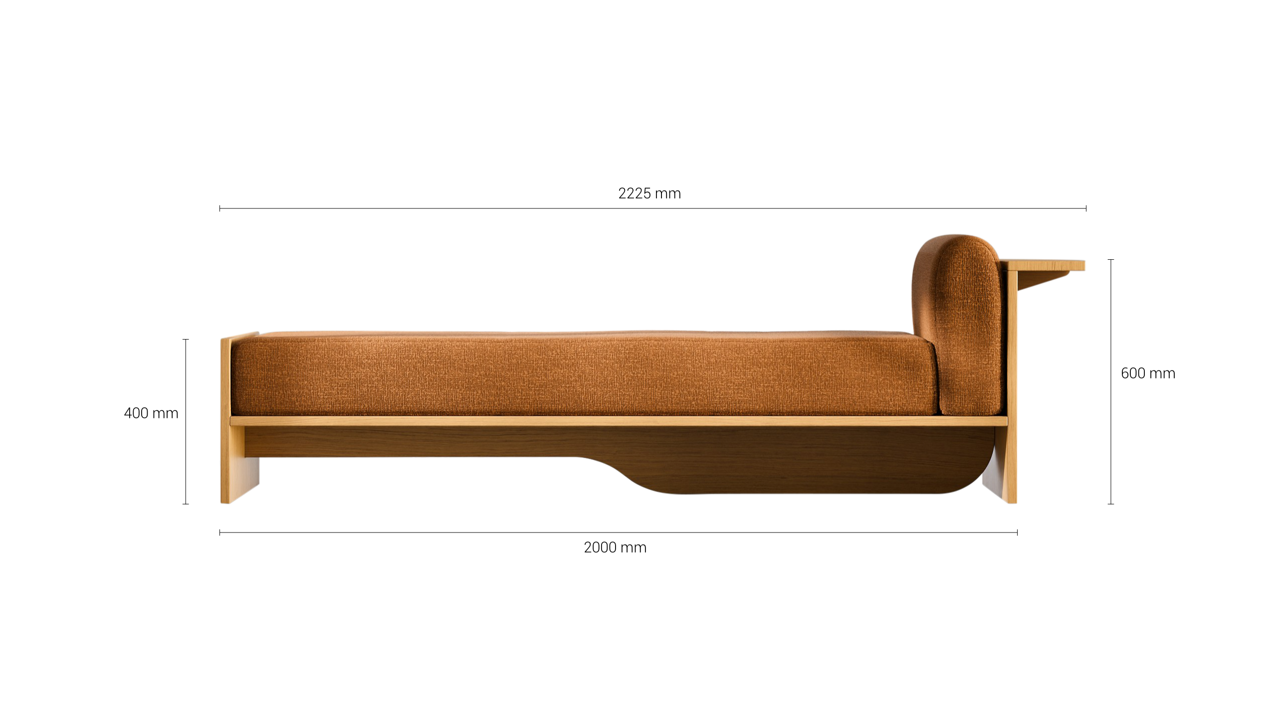 Avec ce daybed, j’ai voulu rendre hommage à cet animal qui incarne pour moi l’affection, la complicité et les souvenirs d’enfance. Sa silhouette allongée et sa posture fidèle réinterprètent, dans un langage minimaliste, l’esprit du Teckel, compagnon aussi élégant qu’attachant. Son assise généreuse et son dossier arrondi invitent à la détente, offrant un confort enveloppant propice à la sieste. La structure est en Teck, subtilement travaillée, apporte chaleur et équilibre, tandis que l’accoudoir fonctionnel prolonge l’usage en servant aussi de petite tablette d’appoint. Un mobilier à la fois sculptural et accueillant, pensé pour habiter l’espace avec douceur et caractère.